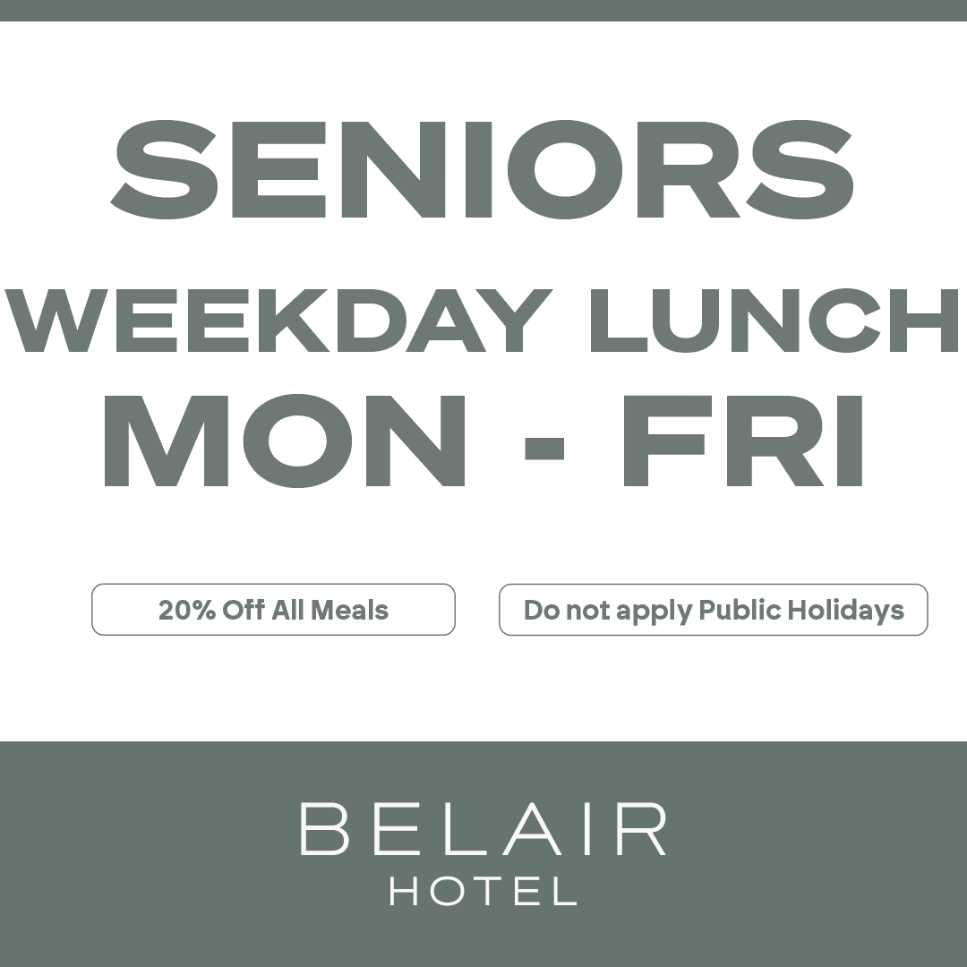 Seniors save 20% on lunch Monday to Friday — not available on public holidays